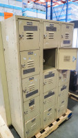Lyon 15-bank locker section with 10 in × 10 in lockers.