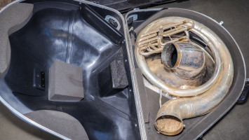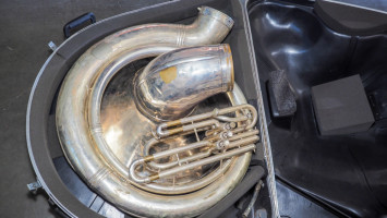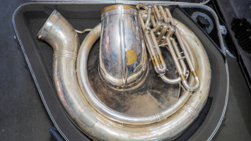 Silver sousaphone with a king hard travel case (#88) College Station Isd
