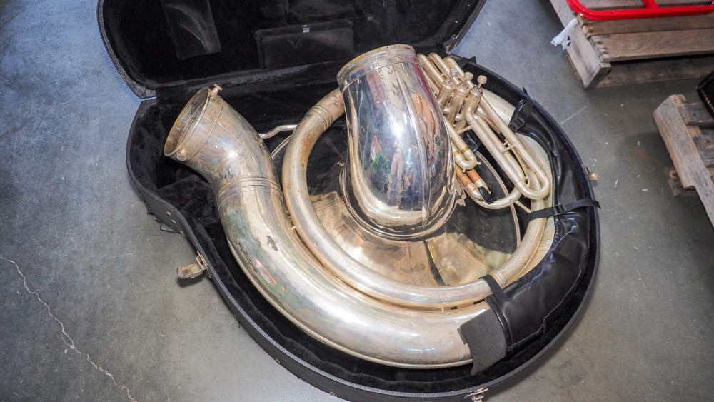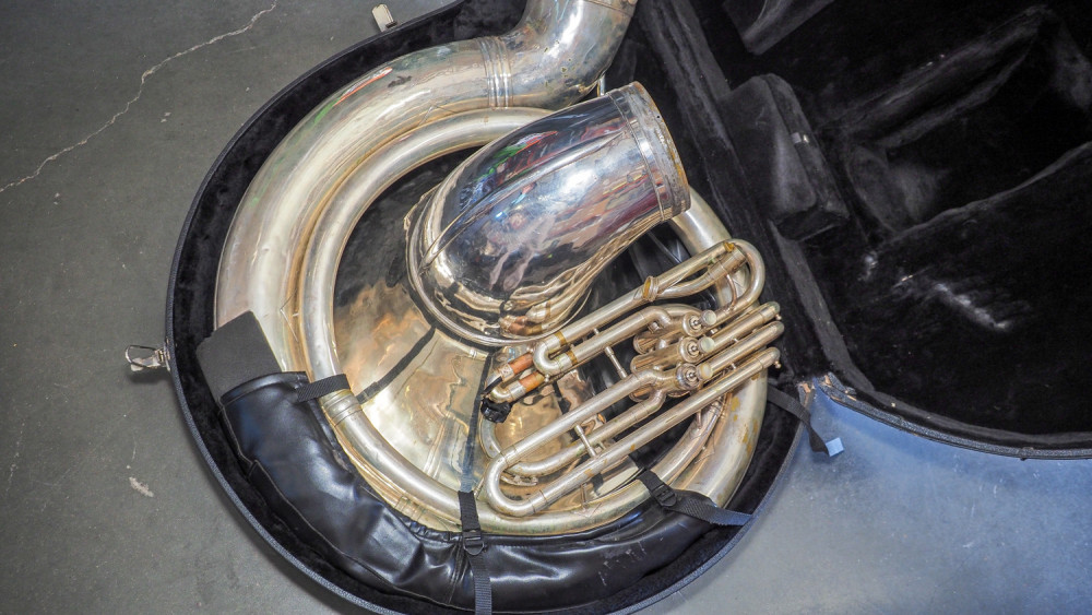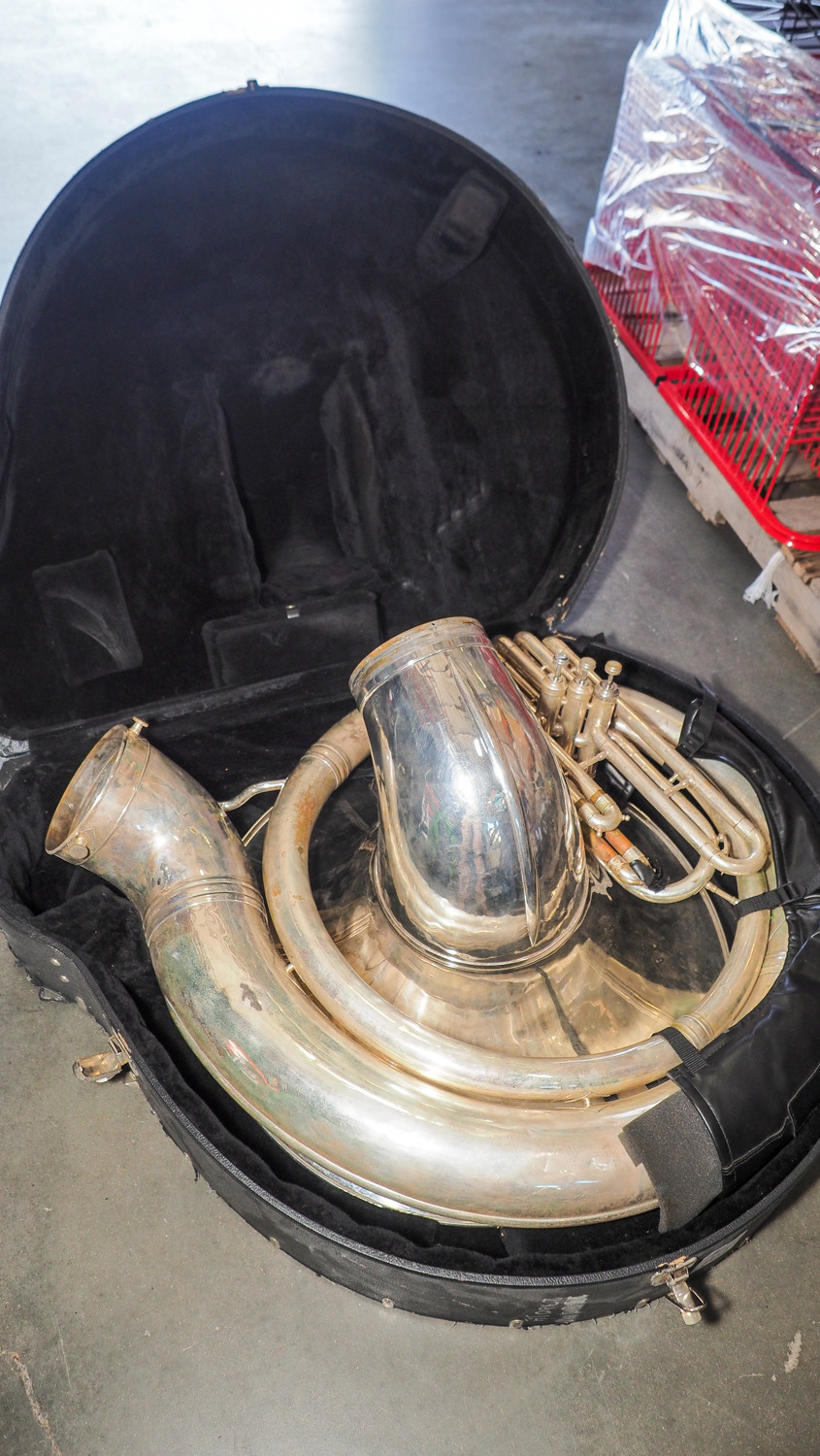 Silver sousaphone with hard travel case (#89) College Station Isd