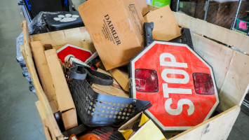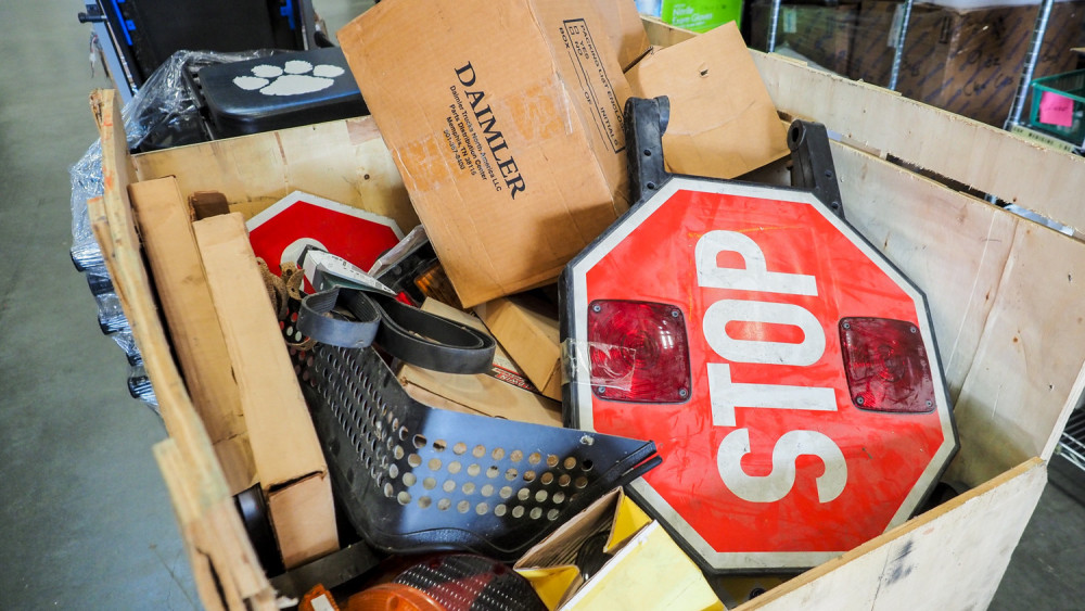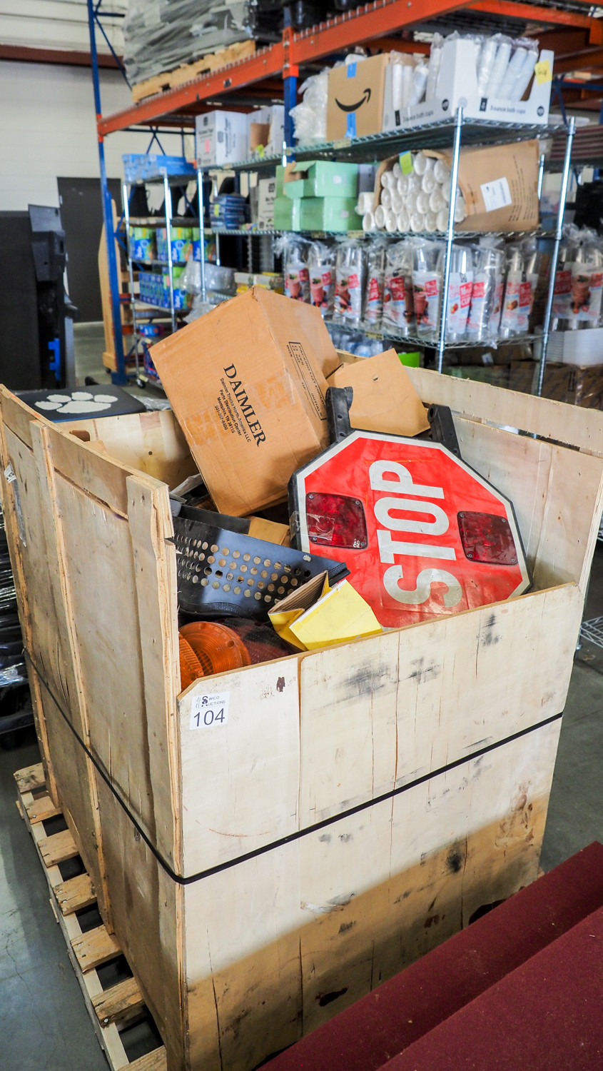 Pallet includes stop signs, lights, Turn signals, Filters, belts. Gasket material, Sump filters and more Condition: is some used parts, but mostly new parts.