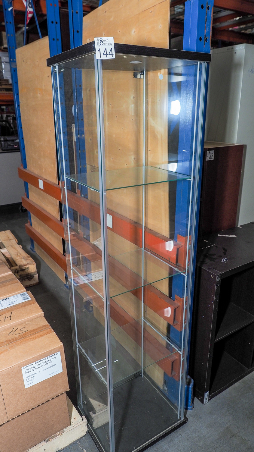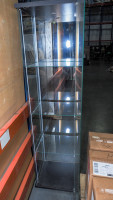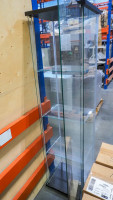 Measures 14.5x 16.75x 64 inches. With glass shelves. And wire frame