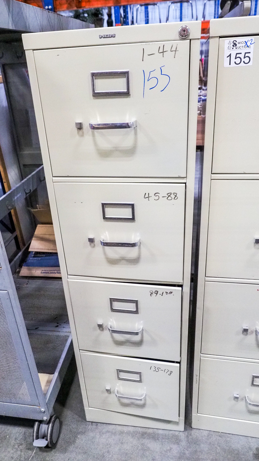 4 drawers, 1 letter size, 1 legal size. Condition:The letter size frame is tweaked so the drawers do not sit flush