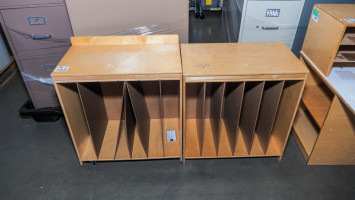 Measured 24 x 15. X 25 inches. One is on wheels. Both have a top that tips up to be an easel. Condition:One cart is missing the paper shelf on the top.