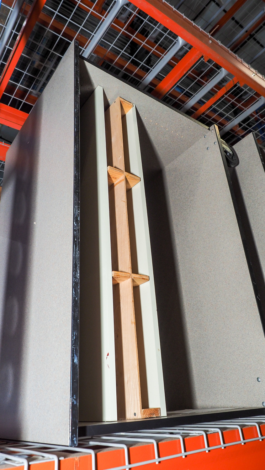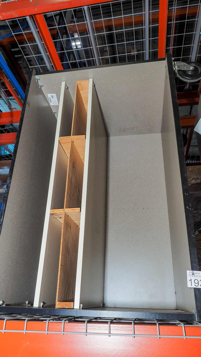 Rolling workstations measuring 48 in × 28 in × 36 in with adjustable shelving.