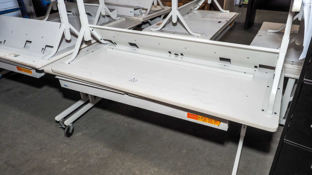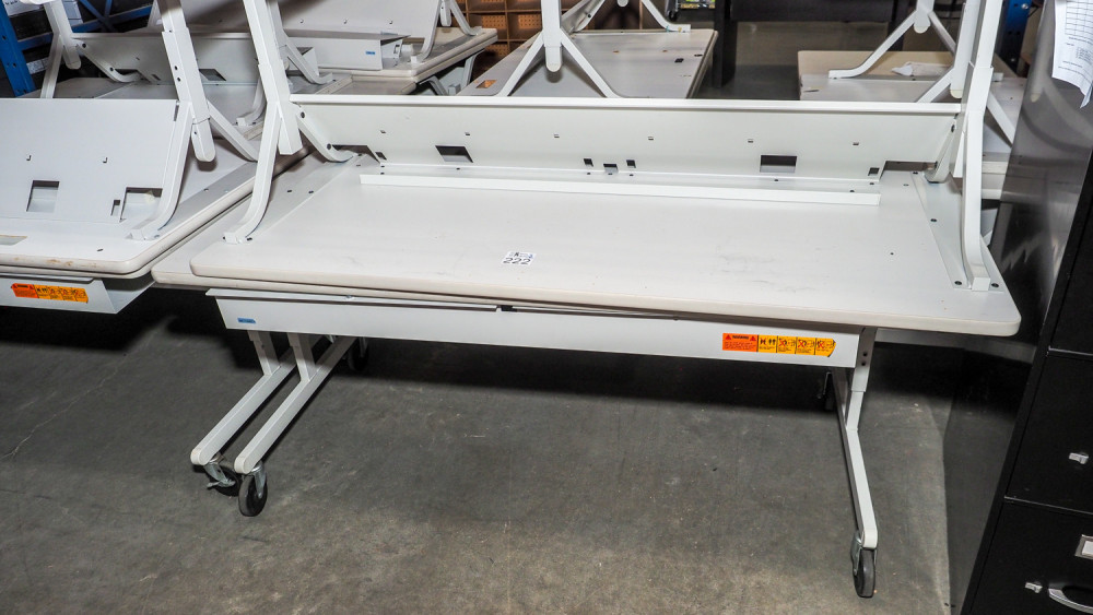 (2) rolling white tables measuring 30 in × 60 in.