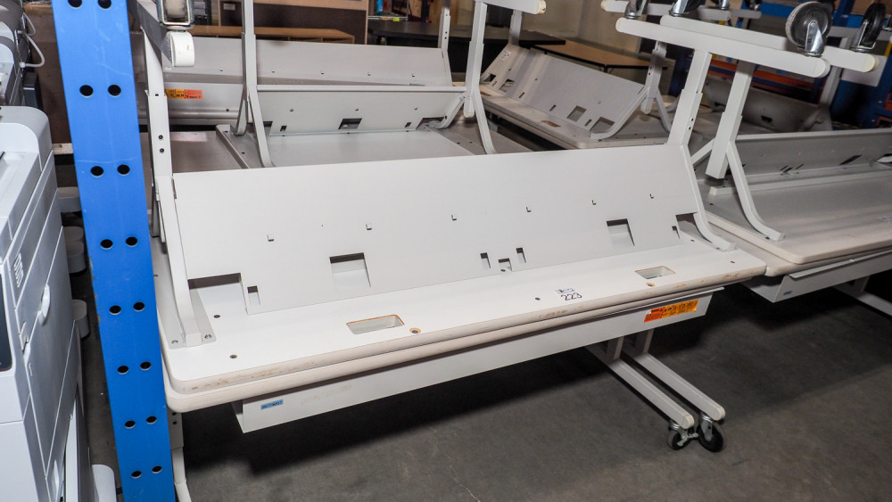 (2) rolling white tables measuring 30 in × 60 in.