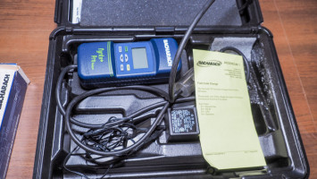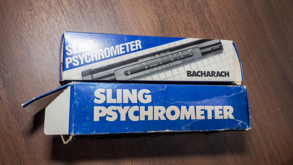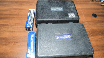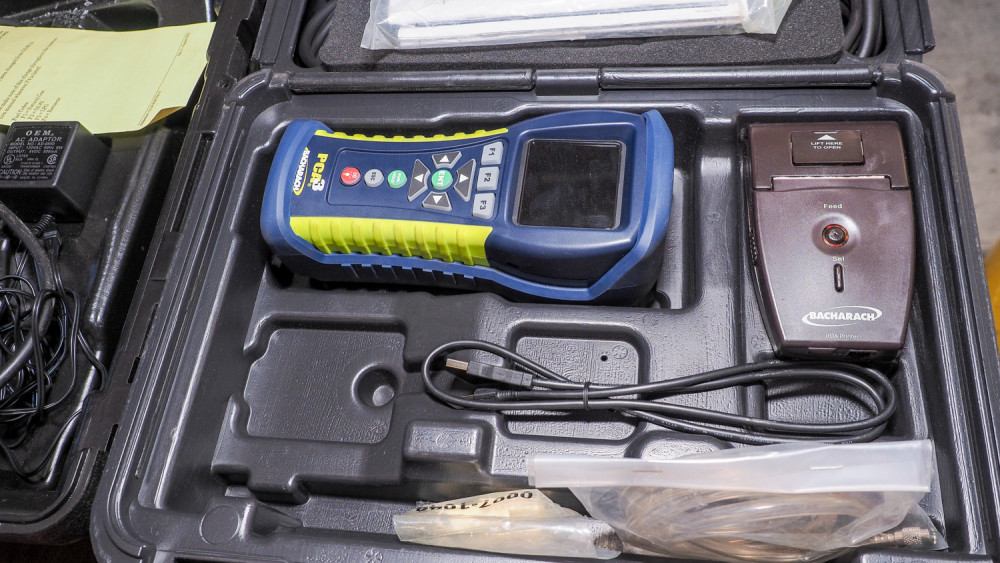 Bacharach test equipment including a Fyrite Pro analyzer, a PCA 3 portable combustion analyzer, and two sling psychrometers. Condition: is unknown.