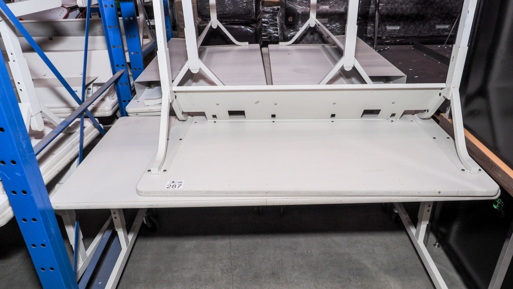(6) white rolling tables (#287) College Station Isd