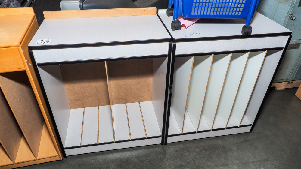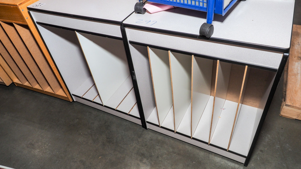(2) Grey rolling art stations (#297) College Station Isd