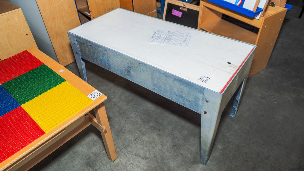 Sensory table. Measures 22x 46 X 25 inches. Plastic tub inside is cracked.
