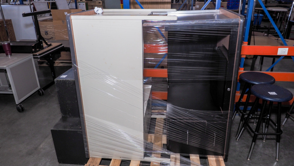 (2) single pedestal metal desks (#311) College Station Isd