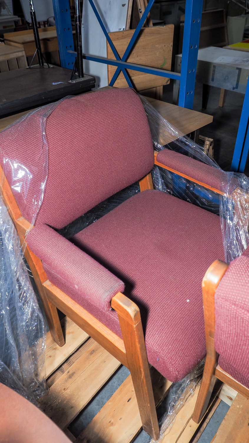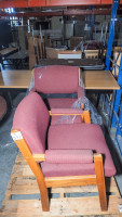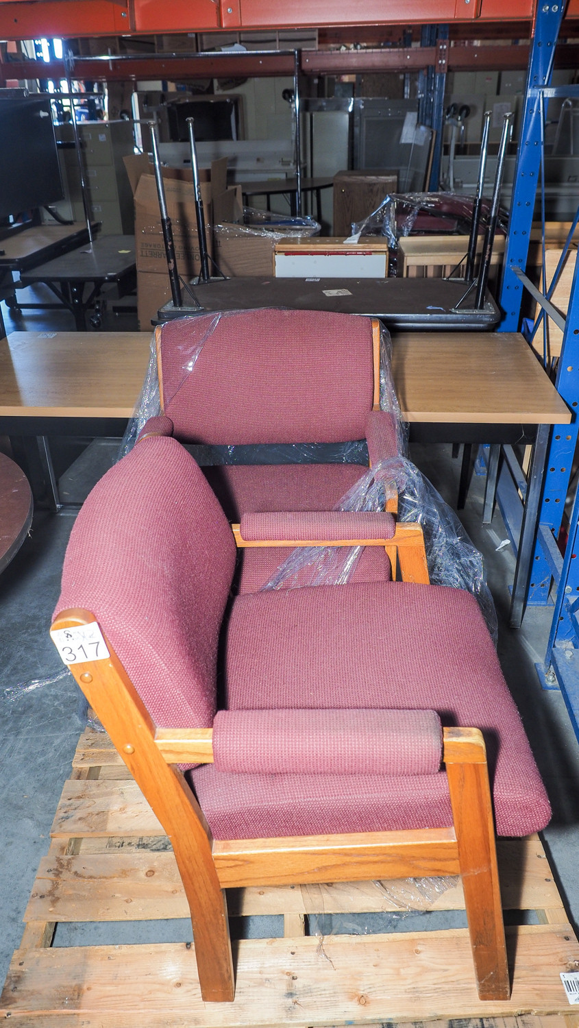 2 Wood frame maroon chairs (#317) College Station Isd