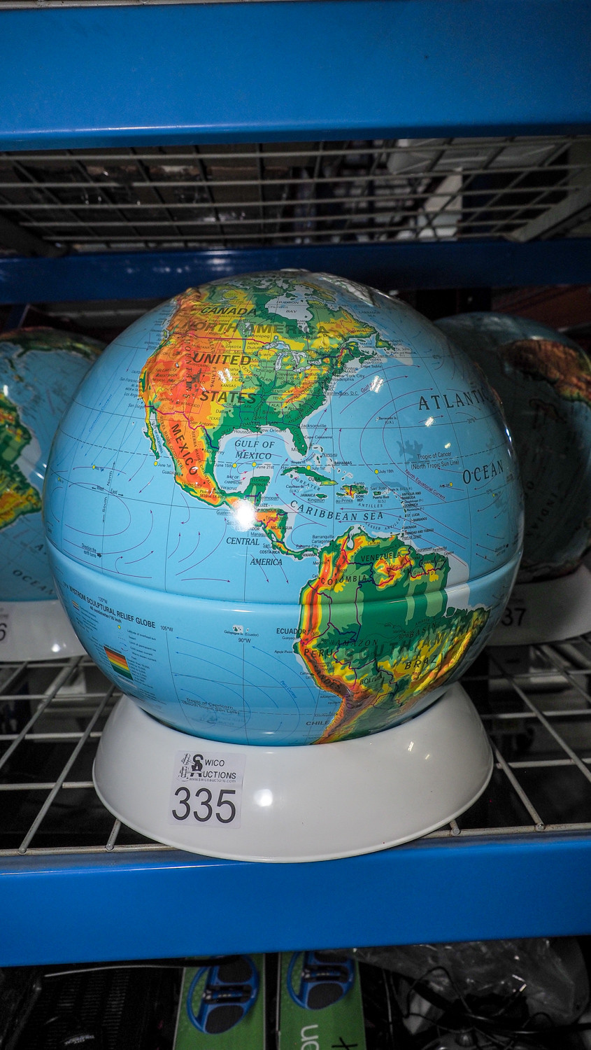 Nystrom sculpture relief globe, 16 inch diameter.