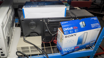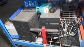 Shelf of electronics and AV equipment, (#340) College Station Isd