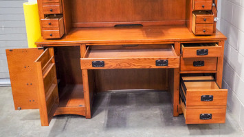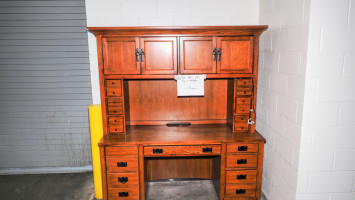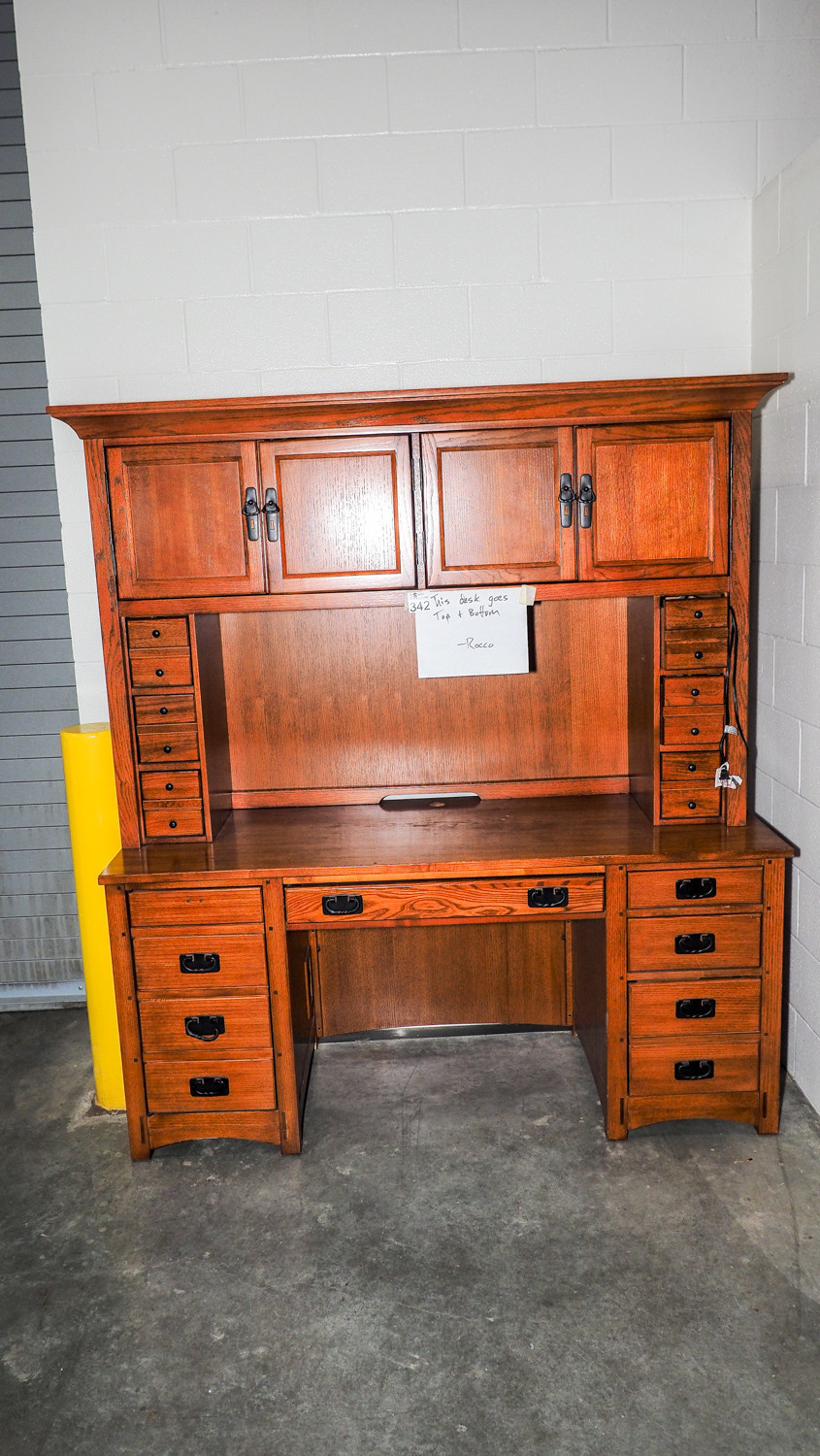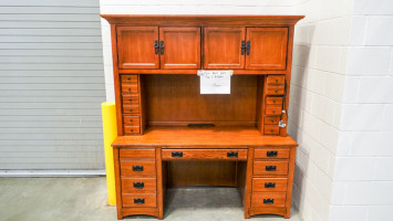 Measures 66x 24x 74 inches overall. Lighted top unit, keyboard center tray.