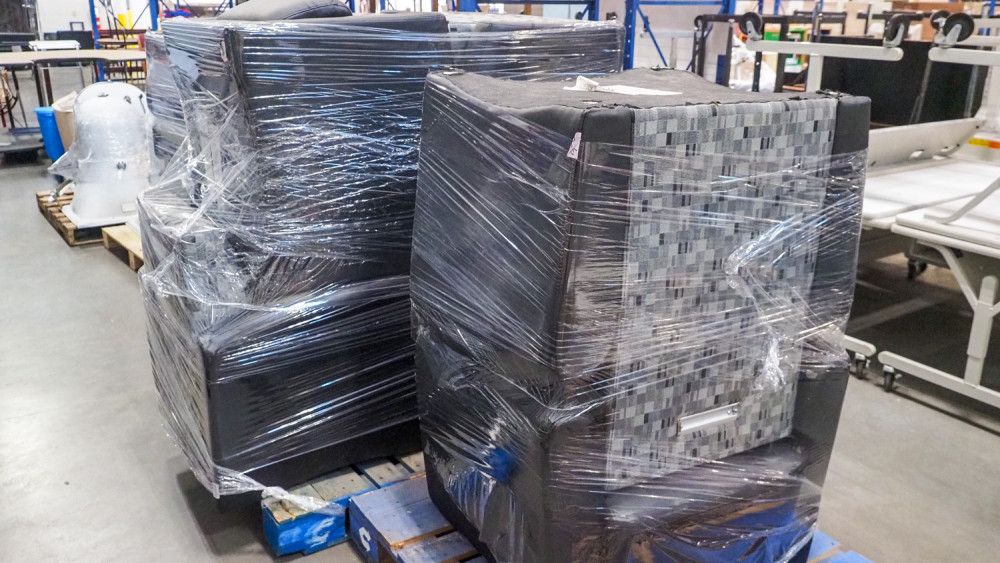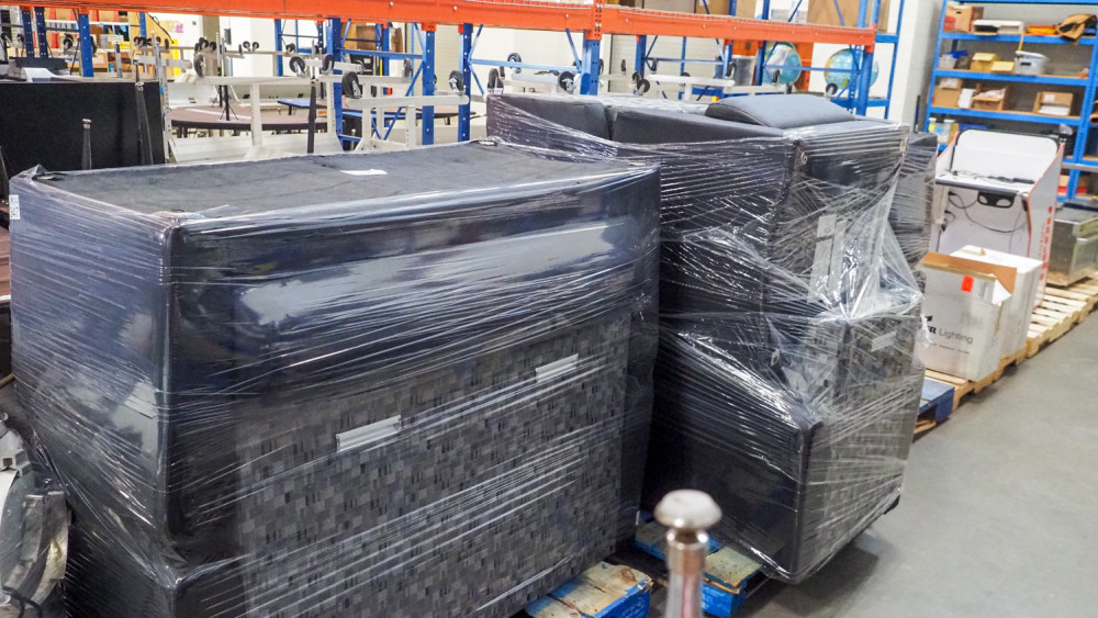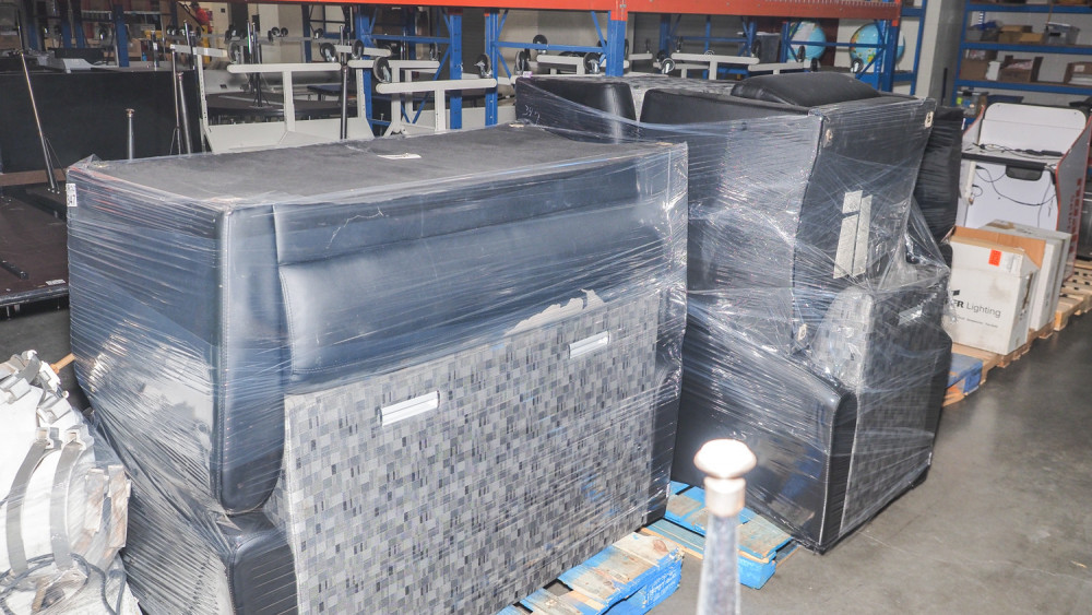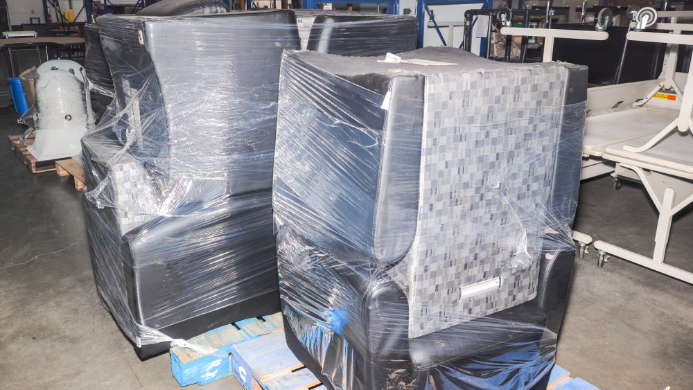 Includes love seats and single chairs. Upholstery has heavy wear. The feet were removed during use because they were scratching the floor. So no feed included. Condition:heavy wear and no feet