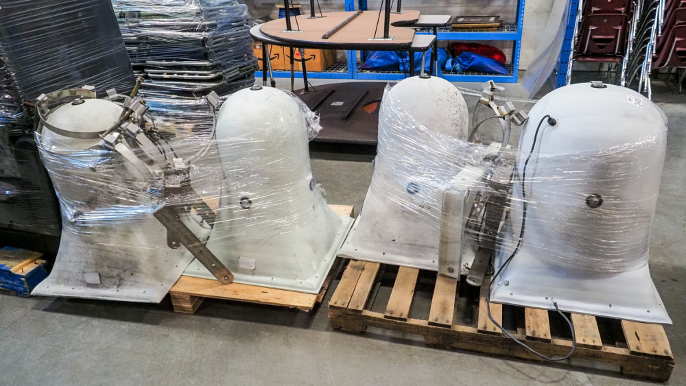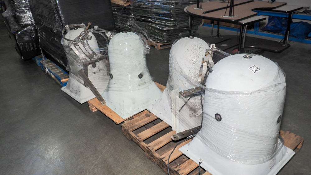 Outdoor loudspeakers. Has some Mounting brackets for poles. Condition: unknown.
