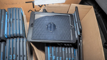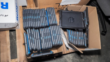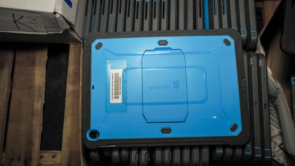 (2) boxes of black and blue iPad cases, mostly Unicorn Beetle cases for Lightning-connector models. Condition:Some are missing the kick stands.