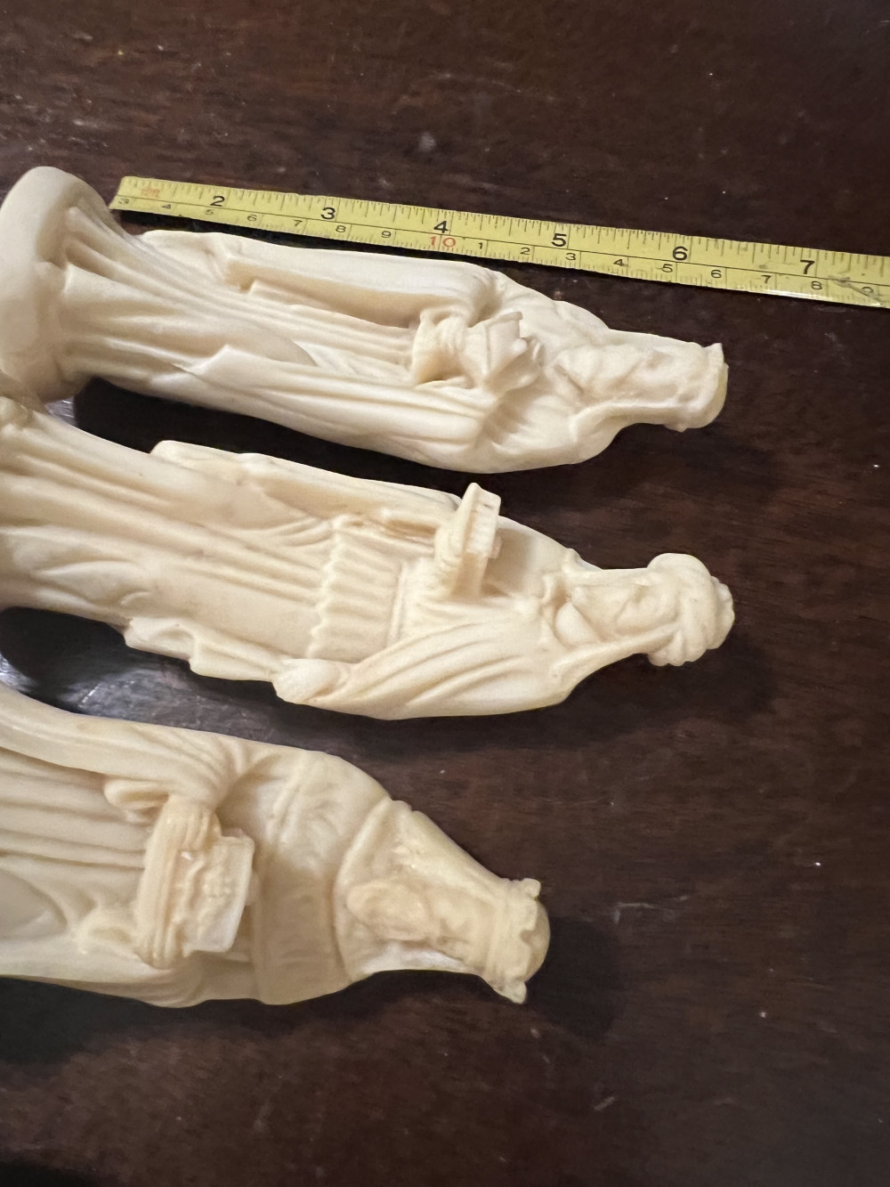 Nativity scene pieces, made of resin ?? Not sure. There is no stable included. Use as is or paint.