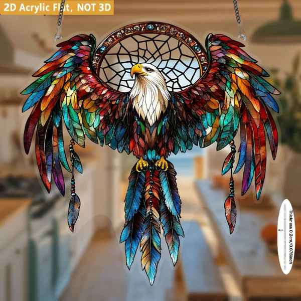 1pc 2D Flat, Eagle Painted Window Hanging Suncatcher, (7.9" x 7.9") Acrylic Sign Bin 2 Great Deals and Steal