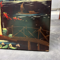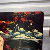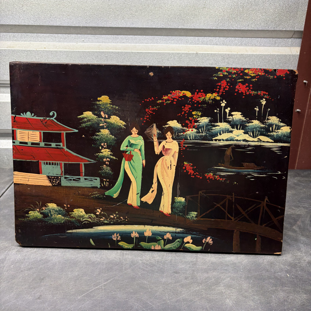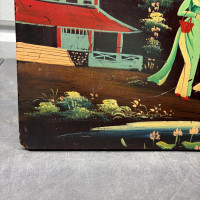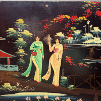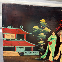 Vintage Japanese Geisha Girls Black Lacquer Painting Artwork & Decor
