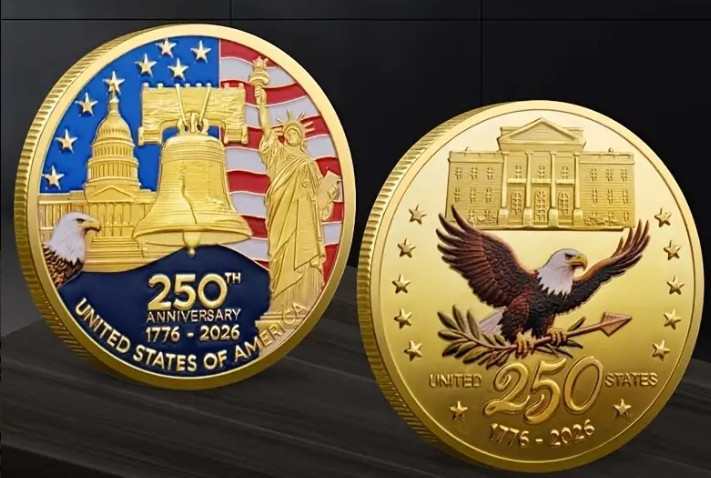 250th Anniversary Eagle Challenge Metal Badge, Golden American Flag & Statue of Liberty Design Bin 1 *** Great Deals and Steal