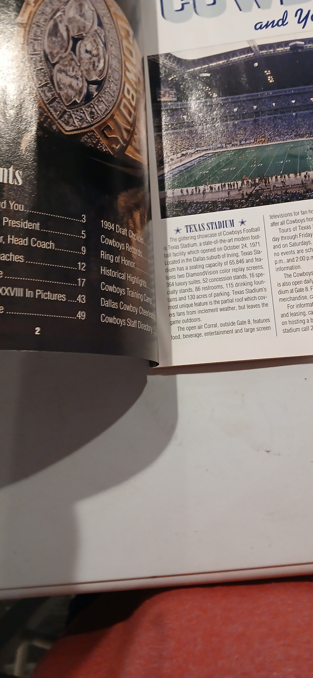 This is a Dallas Cowboys 1994 Bluebook . its it pretty nice condition, no writing on it or tears but the cover isn't perfect and it is over 30 years old. There is slight wear on the edges. Great for the Cowboy fans!