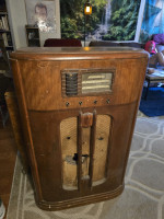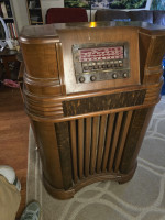 Offered for auction are two iconic American console radios. Both units have been tested for basic power and are in excellent structural condition for their age. These are perfect projects for a vintage electronics hobbyist or a unique home decor restoration.