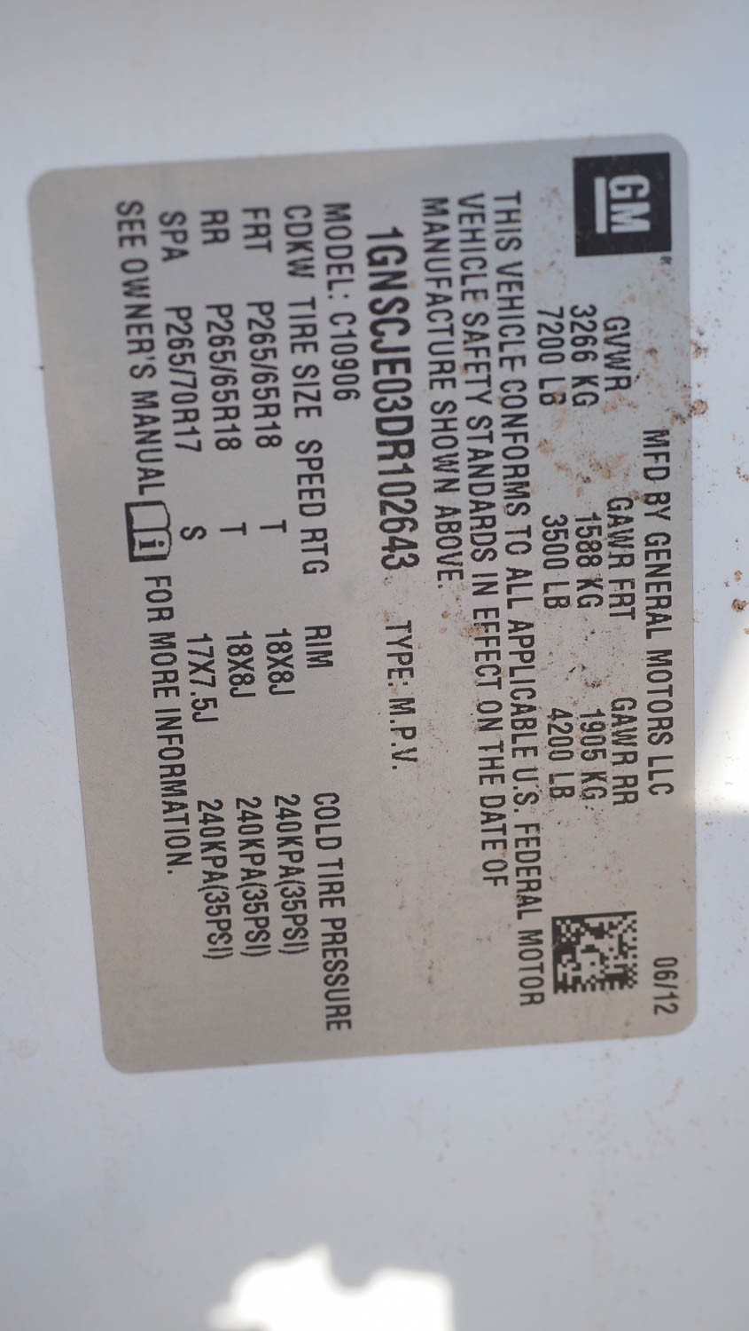 2013 CHEVROLET SUBURBAN Z71 VIN: 1GNSCJE03DR102643; OD: 145469 (#453210) University Of Texas At Austin