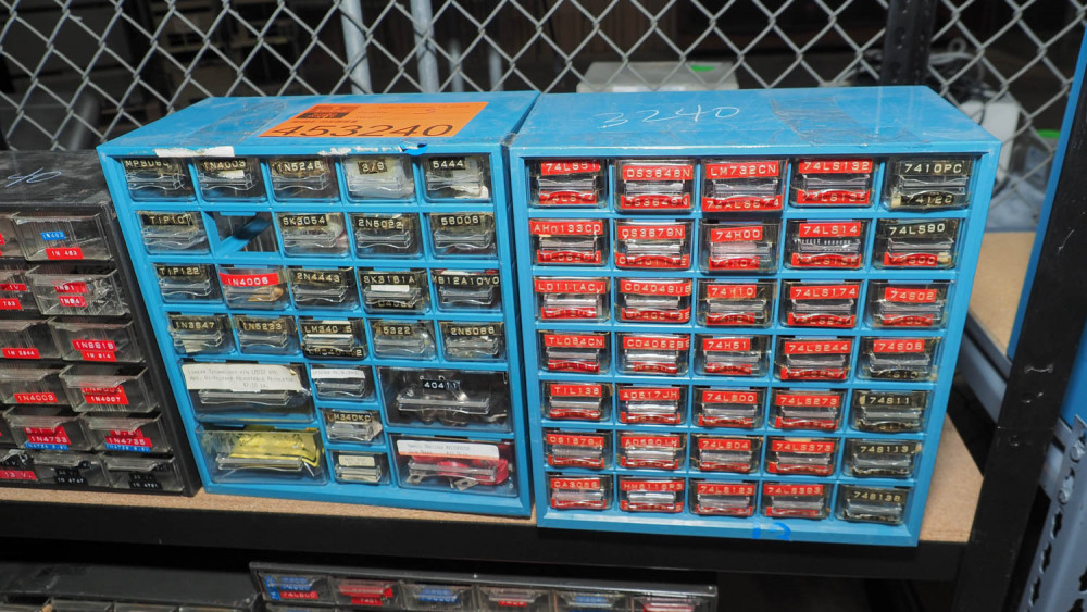 3 PARTS BINS OF ELECTRICAL SEMICONDUCTORS *The University of Texas at Austin makes no claim of physical or mechanical , and functionality of items available through SWICO Auctions. All items are sold “As is, where is”. It is the sole responsibility of the bidder to physically inspect items before bidding and assume all risk. Photos and descriptions are for preview only. All sales are final and no refunds will be issued. Please refer to the SWICO “Terms of Service” in which you have agreed to.