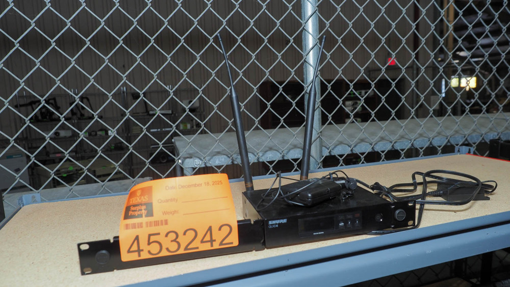 Includes QLXD4 receiver and QLXD1 transmitter belt pack plus lavalier mic. Condition:Unit comes on and appears to transmit sound. *The University of Texas at Austin makes no claim of physical or mechanical , and functionality of items available through SWICO Auctions. All items are sold “As is, where is”. It is the sole responsibility of the bidder to physically inspect items before bidding and assume all risk. Photos and descriptions are for preview only. All sales are final and no refunds will be issued. Please refer to the SWICO “Terms of Service” in which you have agreed to.