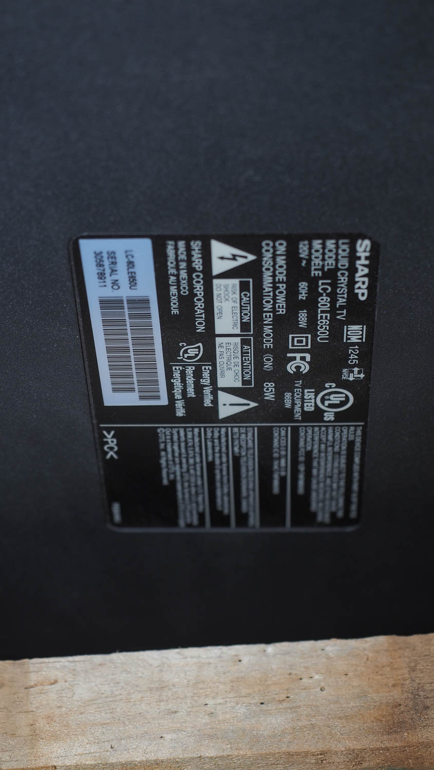 SHARP MODEL LC-60LE650U TV (#453253) University Of Texas At Austin