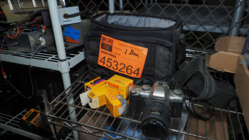 Includes 35-80mm lens, Tamron 5.6 22-70mm lens, Star-D 1:2.8 F 28mm lens, 5 rolls of Kodak film, flash, and carrying case. Condition:Condition unknown. *The University of Texas at Austin makes no claim of physical or mechanical , and functionality of items available through SWICO Auctions. All items are sold “As is, where is”. It is the sole responsibility of the bidder to physically inspect items before bidding and assume all risk. Photos and descriptions are for preview only. All sales are final and no refunds will be issued. Please refer to the SWICO “Terms of Service” in which you have agreed to.
