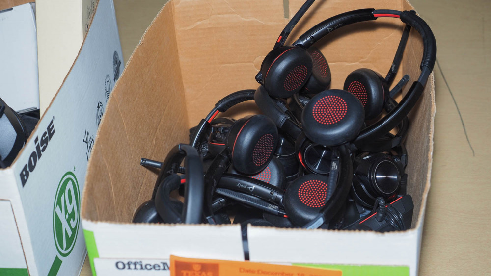 BOX OF POLY BLUETOOTH HEADSETS (#453288) University Of Texas At Austin