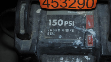 150 PSI, 2.6 SCFM, 6 gallons. Condition:Comes on and builds air pressure. *The University of Texas at Austin makes no claim of physical or mechanical , and functionality of items available through SWICO Auctions. All items are sold “As is, where is”. It is the sole responsibility of the bidder to physically inspect items before bidding and assume all risk. Photos and descriptions are for preview only. All sales are final and no refunds will be issued. Please refer to the SWICO “Terms of Service” in which you have agreed to.