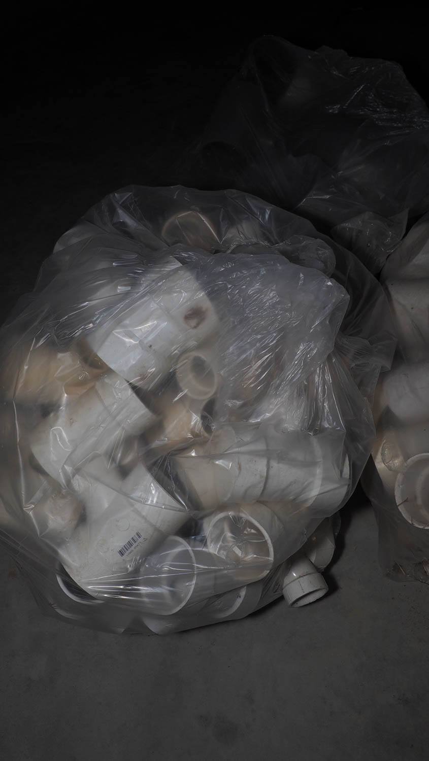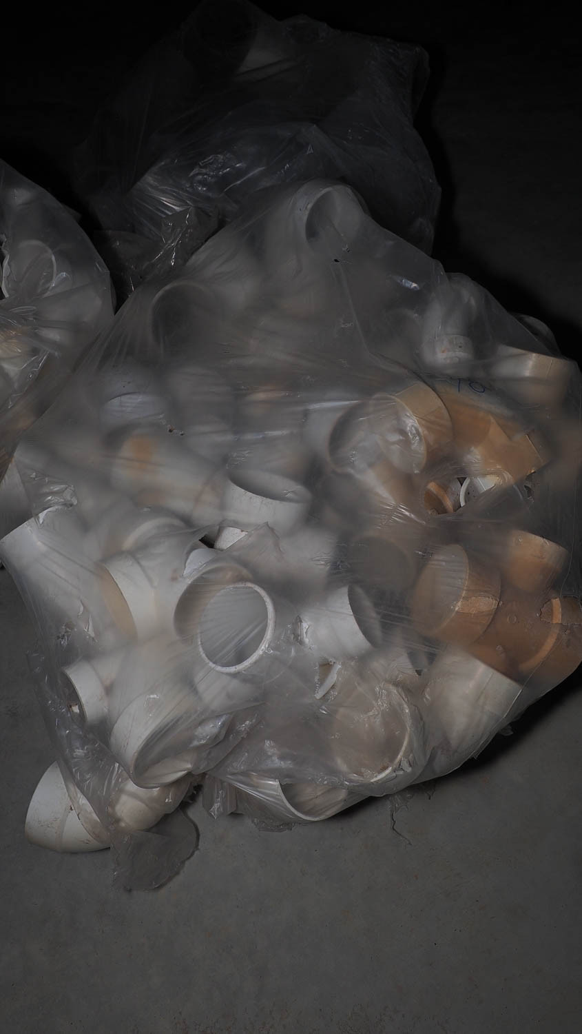 Pile of pvc pipe fittings. (#48) Inventory Reduction
