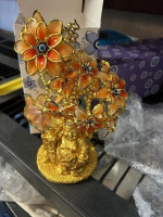 Turkish Nazar Evil Eye Tree with Laughing Golden Buddha with blue center flowers Great Deals and Steal