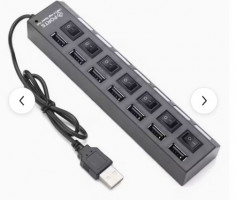 7-Port USB 2.0 Hub with Individual On/Off Switches & Blue LED Lights - USB- (No External Adapter) Plug & Play Splitter for PC, Laptop, Desktop - USB-A Ports Hub for Flash Drives, HDD Bin 9 ** Great Deals and Steal