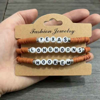 Texas Longhorns Beaded Bracelet Set, Hook 'Em Polymer Clay Stackable Wristband Great Deals and Steal