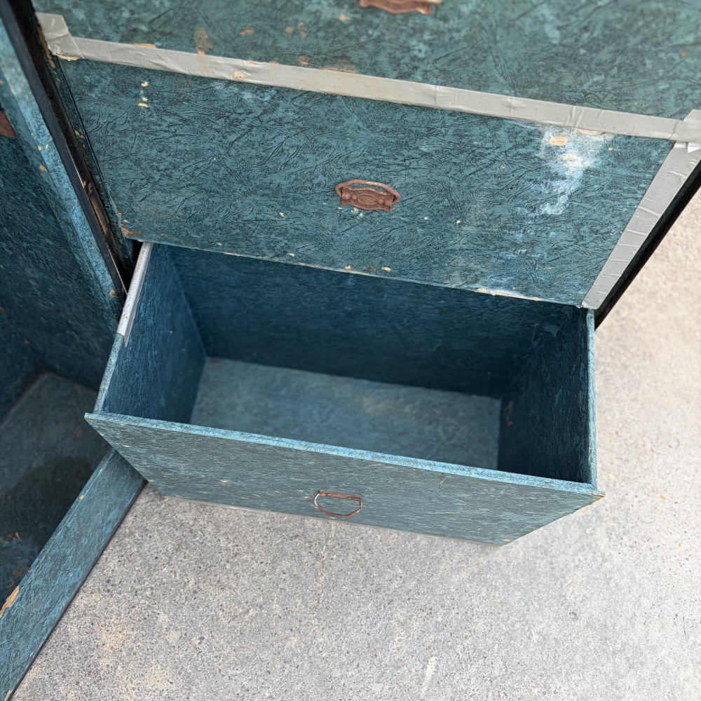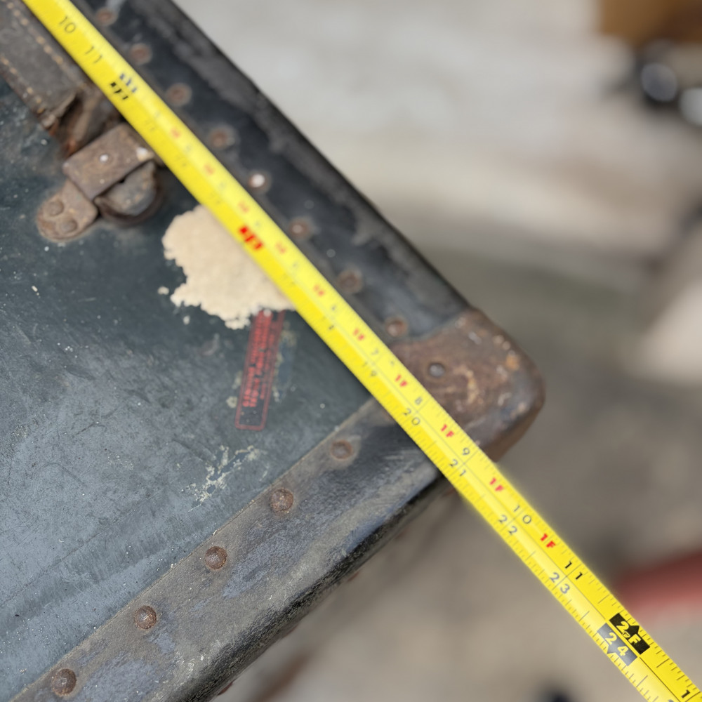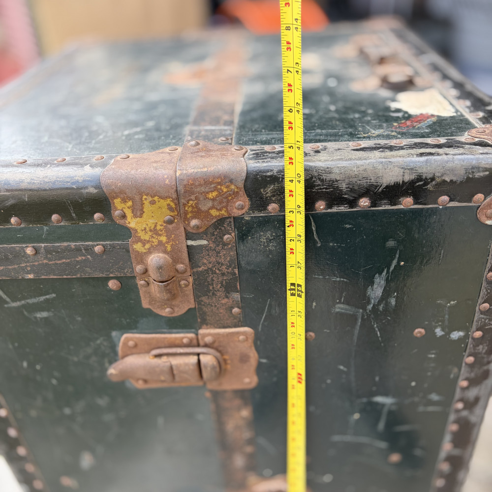 Trunk is in worn shape but still intact, could use some TLC and restoration.