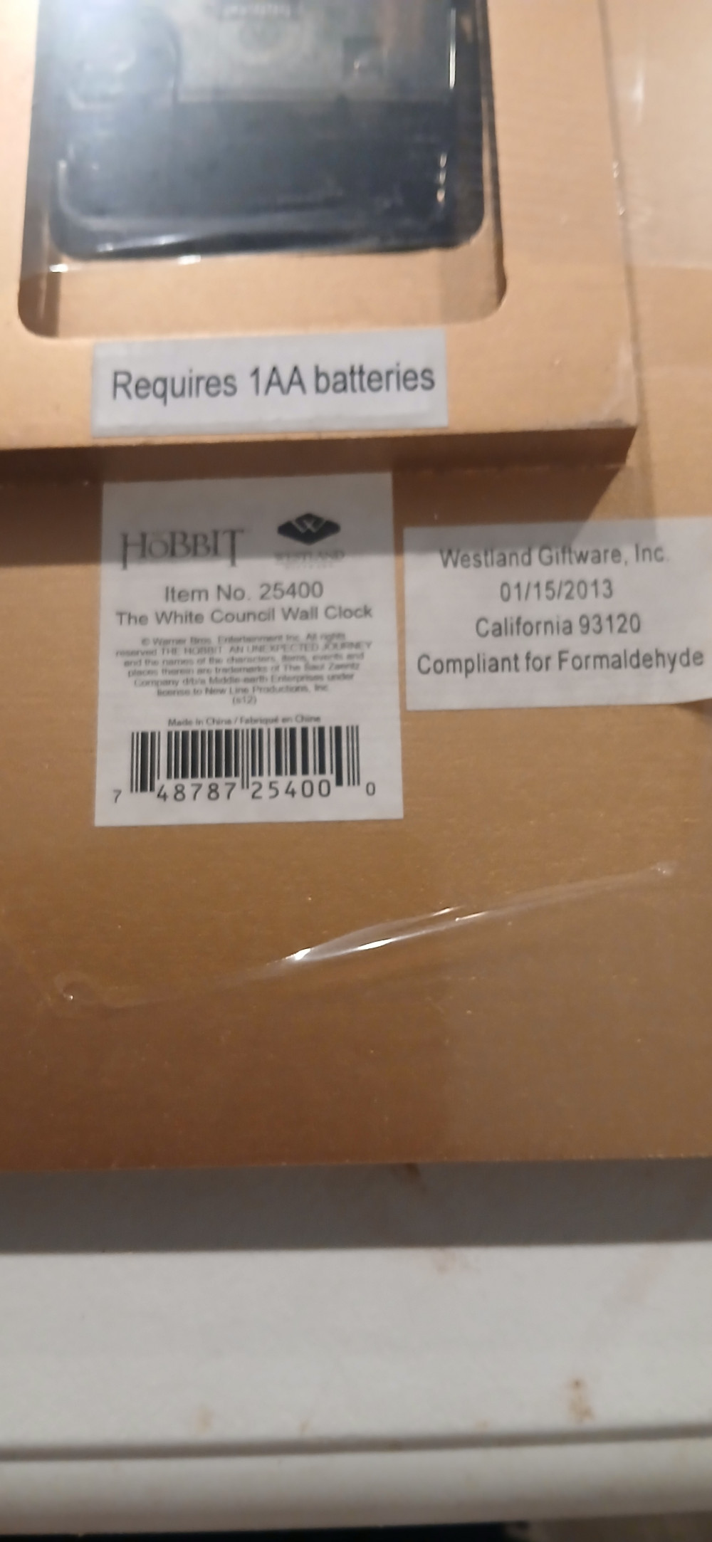 Official The Hobbit An Unexpected Journey The White Council Wall Clock Tolkien Lord of the Rings battery operated clock (battery not included). It is new, never used still wrapped in plastic inside I opened the package to take a picture. Awesome item for the LOTR's and Hobbit collector, nice piece to add to one's collection. These are getting hard to find and often sold out. Item is located in North Bryan. Outer box shows wear and tear from being stored and moved around.