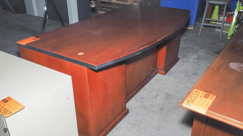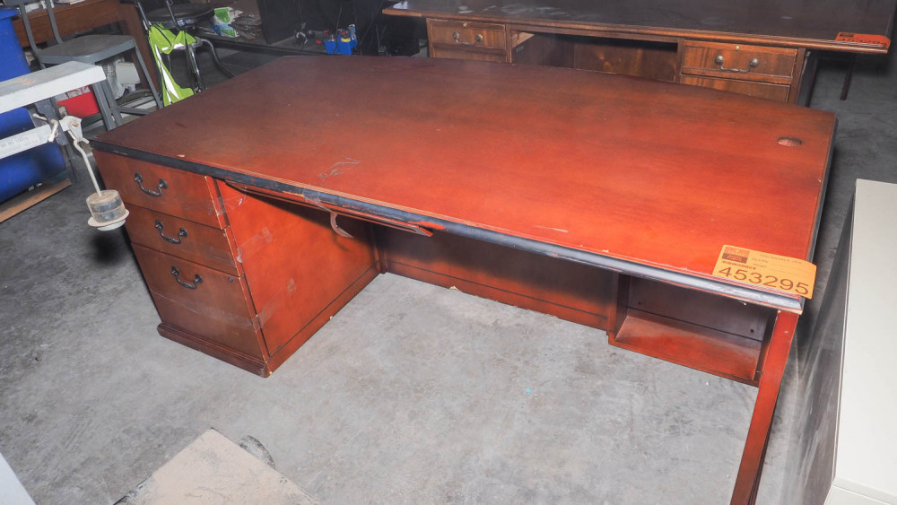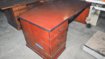 Wood desk measuring 38x72" with four drawers. *The University of Texas at Austin makes no claim of physical or mechanical , and functionality of items available through SWICO Auctions. All items are sold “As is, where is”. It is the sole responsibility of the bidder to physically inspect items before bidding and assume all risk. Photos and descriptions are for preview only. All sales are final and no refunds will be issued. Please refer to the SWICO “Terms of Service” in which you have agreed to.