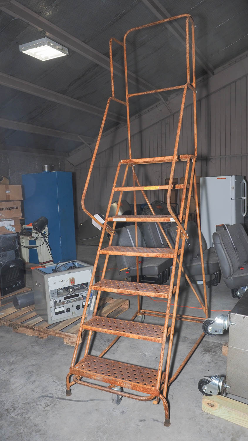 Louisville warehouse ladder approximately 67" tall to top step. *The University of Texas at Austin makes no claim of physical or mechanical , and functionality of items available through SWICO Auctions. All items are sold “As is, where is”. It is the sole responsibility of the bidder to physically inspect items before bidding and assume all risk. Photos and descriptions are for preview only. All sales are final and no refunds will be issued. Please refer to the SWICO “Terms of Service” in which you have agreed to.