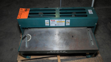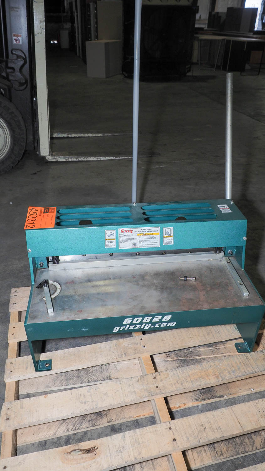 Grizzly G0828 25" benchtop metal shear. Condition:Condition unknown; handle and mechanism do not move. *The University of Texas at Austin makes no claim of physical or mechanical , and functionality of items available through SWICO Auctions. All items are sold “As is, where is”. It is the sole responsibility of the bidder to physically inspect items before bidding and assume all risk. Photos and descriptions are for preview only. All sales are final and no refunds will be issued. Please refer to the SWICO “Terms of Service” in which you have agreed to.
