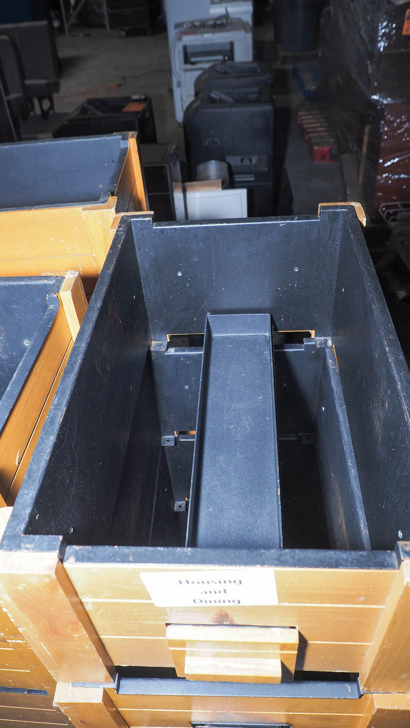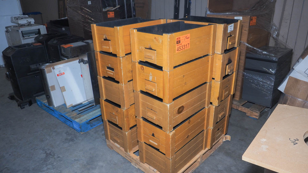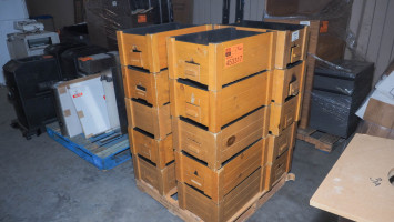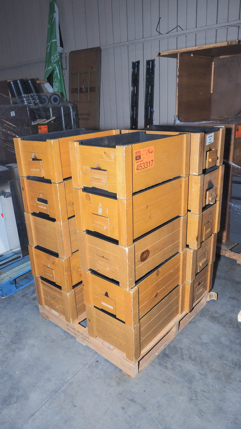 Sixteen wood chafing dish holders with slide-out warmer drawers. Condition:Heavily used with damaged and missing wood trim pieces. *The University of Texas at Austin makes no claim of physical or mechanical , and functionality of items available through SWICO Auctions. All items are sold “As is, where is”. It is the sole responsibility of the bidder to physically inspect items before bidding and assume all risk. Photos and descriptions are for preview only. All sales are final and no refunds will be issued. Please refer to the SWICO “Terms of Service” in which you have agreed to.