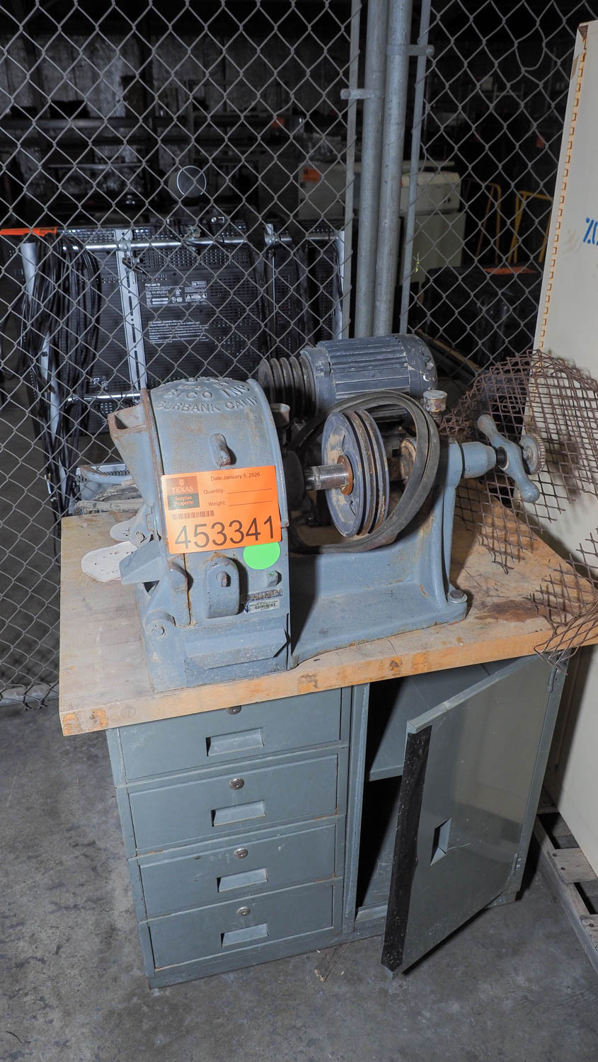 Has a 2 horsepower 230/460 volt three phase motor. Table measures 24 by 36 by 34 inches. Has a 2 inch laminated top, 4 drawers and storage door. Condition:Condition unknown. *The University of Texas at Austin makes no claim of physical or mechanical , and functionality of items available through SWICO Auctions. All items are sold “As is, where is”. It is the sole responsibility of the bidder to physically inspect items before bidding and assume all risk. Photos and descriptions are for preview only. All sales are final and no refunds will be issued. Please refer to the SWICO “Terms of Service” in which you have agreed to.