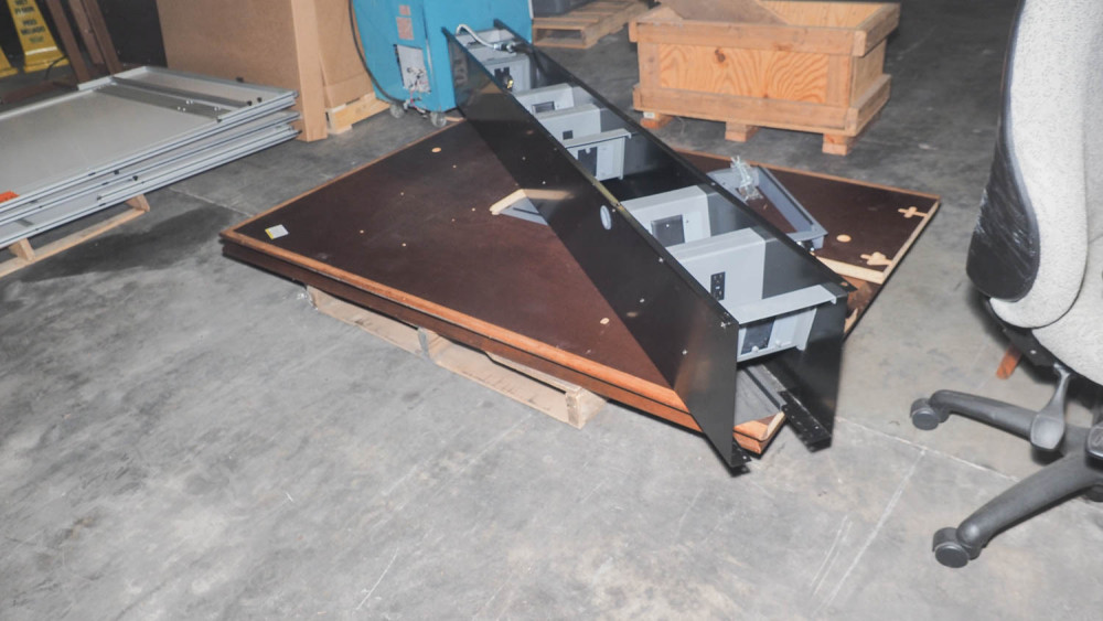 Measures 4 foot by 12 foot. Has two pedestal legs. Includes metal power distribution tray and hardware. *The University of Texas at Austin makes no claim of physical or mechanical , and functionality of items available through SWICO Auctions. All items are sold “As is, where is”. It is the sole responsibility of the bidder to physically inspect items before bidding and assume all risk. Photos and descriptions are for preview only. All sales are final and no refunds will be issued. Please refer to the SWICO “Terms of Service” in which you have agreed to.
