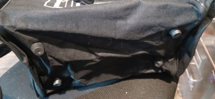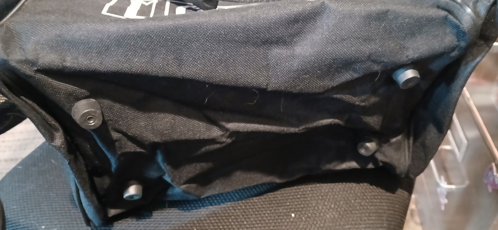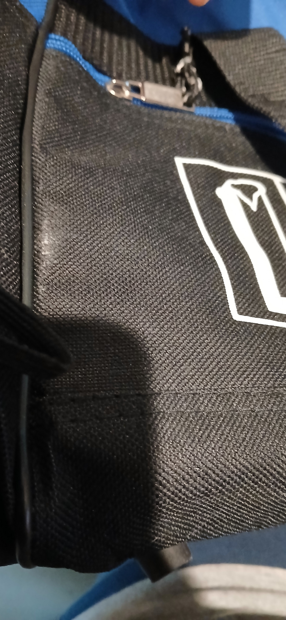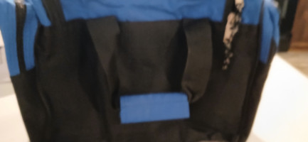 This is an ICEE branded duffel bag that I got from a lot of ICEE points, Nevver used, checked zippers all work. Has large zippered compartment, with 2 zippered pockets on both sides and 1 zippered front pocket. Did not come with a strap but does have the carrying handles. Also has "feet " on bottom so bag is not sitting directly on surfaces. Does have one white spot (not sure what it is) which may wipe off but I didn't try. Folds flat. Has a thin plastic piece at bottom inside to help keep its shape. Has been stored in closet in pet friendly home. It measures about 14" wide, 10" high and about 9. 1/4" deep.