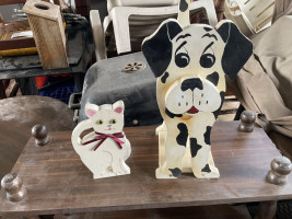 One dog and one cat. They have rods for extra toilet roll storage.