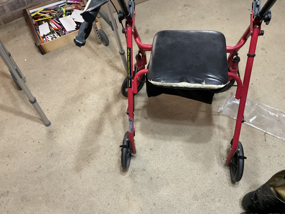 One with wheels and hand brakes. Both fold for easy storage.